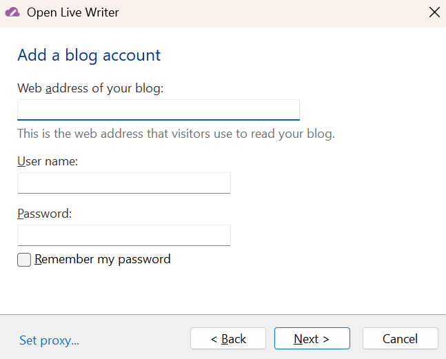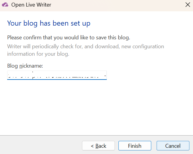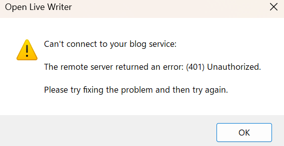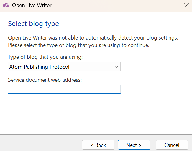 Open Live Writer was not able to automatically detect your blog settings.