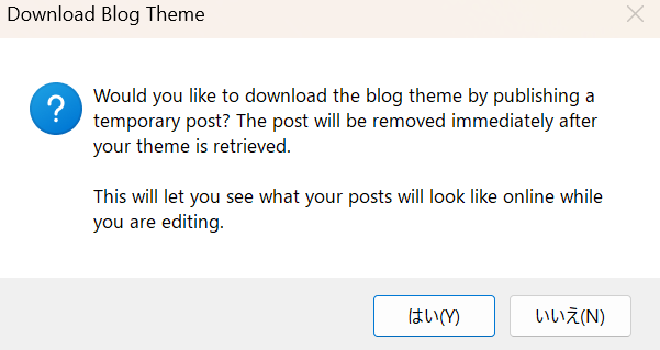 けど、とりあえず、Download Blog Themeって書いてあるから、ま、「はい」でいいかな。